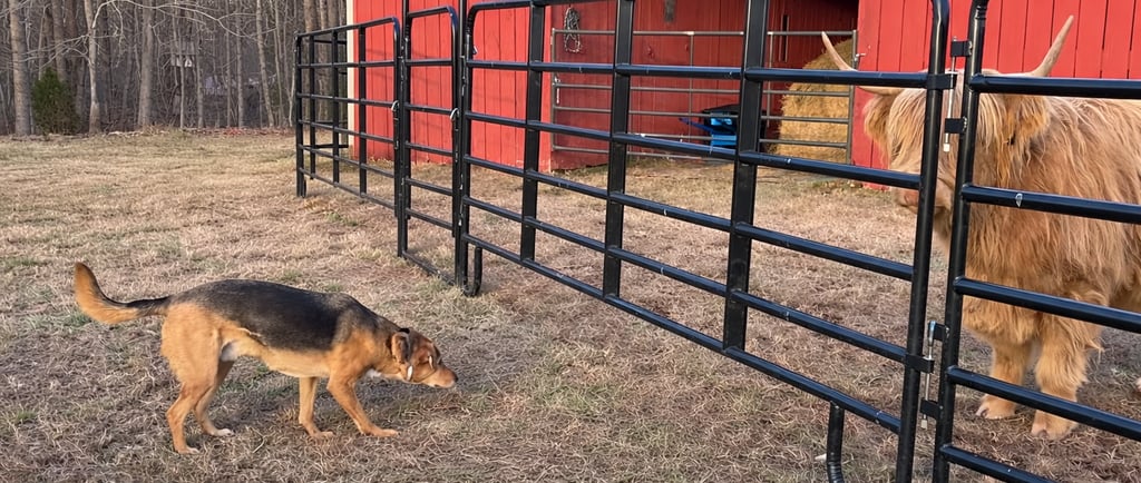Nose met nose through the fence. Cautious sniffing turned to proper introduction. The old sheriff and the young bull, working out the terms.
