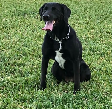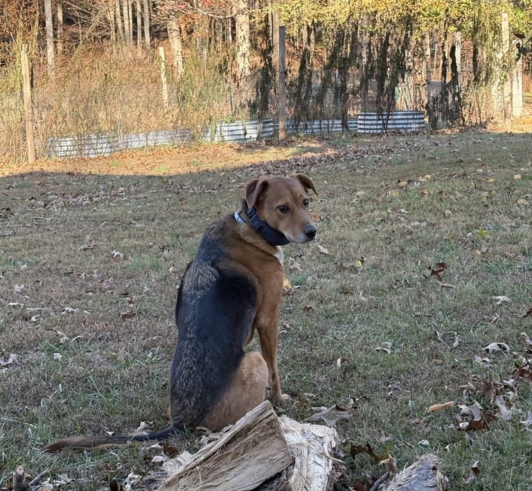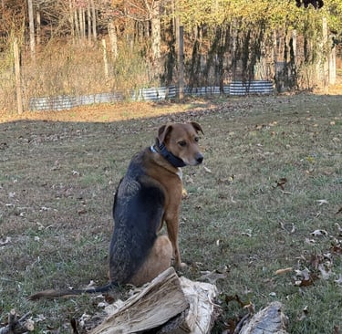 The ranch clown with predator delusions. Equal parts goofball and chaos engine. He'll chase anything that moves, especially the chickens.