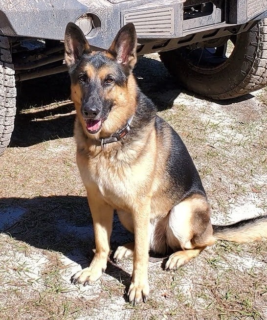 The retired knight of the ridge. His bark can send trouble running, but most days he prefers slow mornings, soft naps and standing guard with quiet dignity.